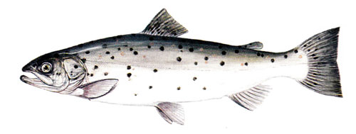 Im Vergleich zum Lachs: Körper gedrungener, Kopf größer, Hinterrand der Schwanzflosse fast gerade, Schwanzstiel kurz, Fettflosse rot umrandet, von den Reusendornen auf dem ersten Kiemenbogen sind nur die mittleren gestreckt, die 2-5 oberen und unteren dagegen knopfförmig, auf der Platte des Pflugscharbeins befindet sich eine Reihe von Zähnen, Schuppenanzahl zwischen Fettflosse und Seitenlinie 13 bis 19